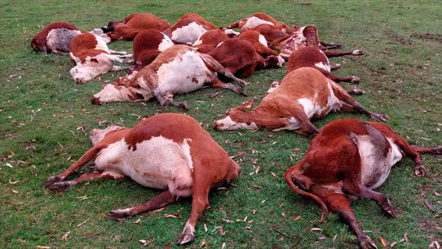 “El martes se les hizo el tacto, las vacas estaban preñadas y las largamos el miércoles con las vaquillas que estaban en el raigrás. El jueves estaba todo bien y el viernes a la mañana, cuando vengo, me encuentro con esto (la muerte de las 24 vacas)”, relató Robol.