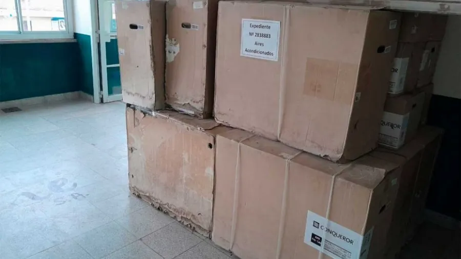 En 2015, un particular donó 18 equipos acondicionadores de aire a la Escuela de Educación Técnica N° 2 Canónigo Narciso Goiburu, de Colón, y desde entonces, hace 8 años que esperan que la Dirección de Arquitectura de la Provincia y el Consejo General de Educación (CGE) liberen los fondos para realizar la instalación eléctrica necesaria para ponerlos a funcionar. Como nada de eso ocurrió -los presupuestos que brindó la distribuidora Energía Entre Ríos SA (Enersa) se vencieron-, los tienen embalados y no los pudieron sacar de sus cajas.