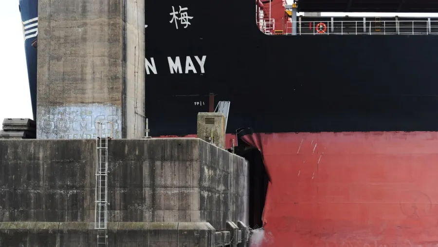 Una embarcación de bandera liberiana, llamada “En May”, sufrió un desperfecto en el timón y embistió uno de los pilares del puente, provocando daños en la estructura.