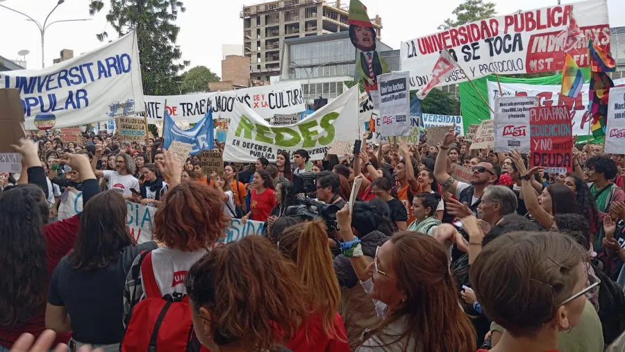Los manifestantes, portando carteles y banderas, expresaron su descontento con la administración actual de Javier Milei, haciendo eco de la necesidad urgente de financiamiento adecuado para la educación superior.