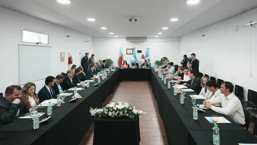 En el Concejo Deliberante tuvo lugar el encuentro de gabinete conjunto, donde el mandatario fue recibido por la intendenta Flavia Pamberger. Estuvieron presentes, ministros del gabinete provincial y funcionarios del Ejecutivo municipal.
