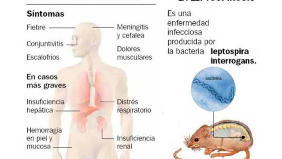La leptospirosis se manifiesta en principio como un cuadro gripal con fiebre, dolor de cabeza, dolores musculares y malestar general. Luego se puede presentar una segunda fase de mayor gravedad.