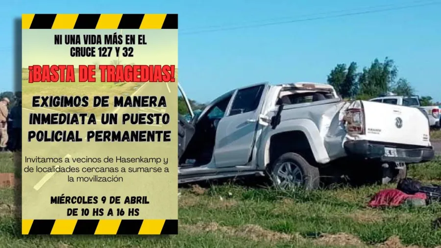 Un grupo de vecinos de la localidad de Hasenkamp ha lanzado un reclamo enérgico exigiendo un puesto policial permanente para hacer frente a la creciente preocupación por los siniestros viales en la zona. La convocatoria, que lleva como lema "Basta de tragedias", busca poner fin a los choques que han marcado los últimos meses en la región. El último fue el viernes 4 cuando murió Alejo Guarascio Moreira, de 22 años.
