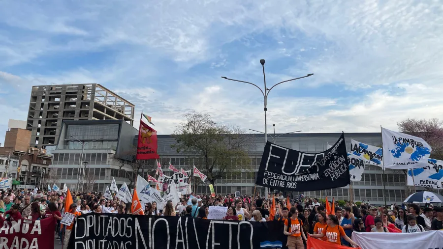 Este miércoles por la tarde, desde las 17 una multitud colmó la Plaza 1º de Mayo de Paraná en el marco de la jornada nacional en defensa de la educación y la salud pública. La movilización, encabezada por sectores universitarios de todos los sectores, reclamó que la Cámara de Diputados revierta el veto del presidente Javier Milei a la Ley de Financiamiento Universitario. La movilización culminó en la explanada de Casa de Gobierno, donde se esperó la votación.