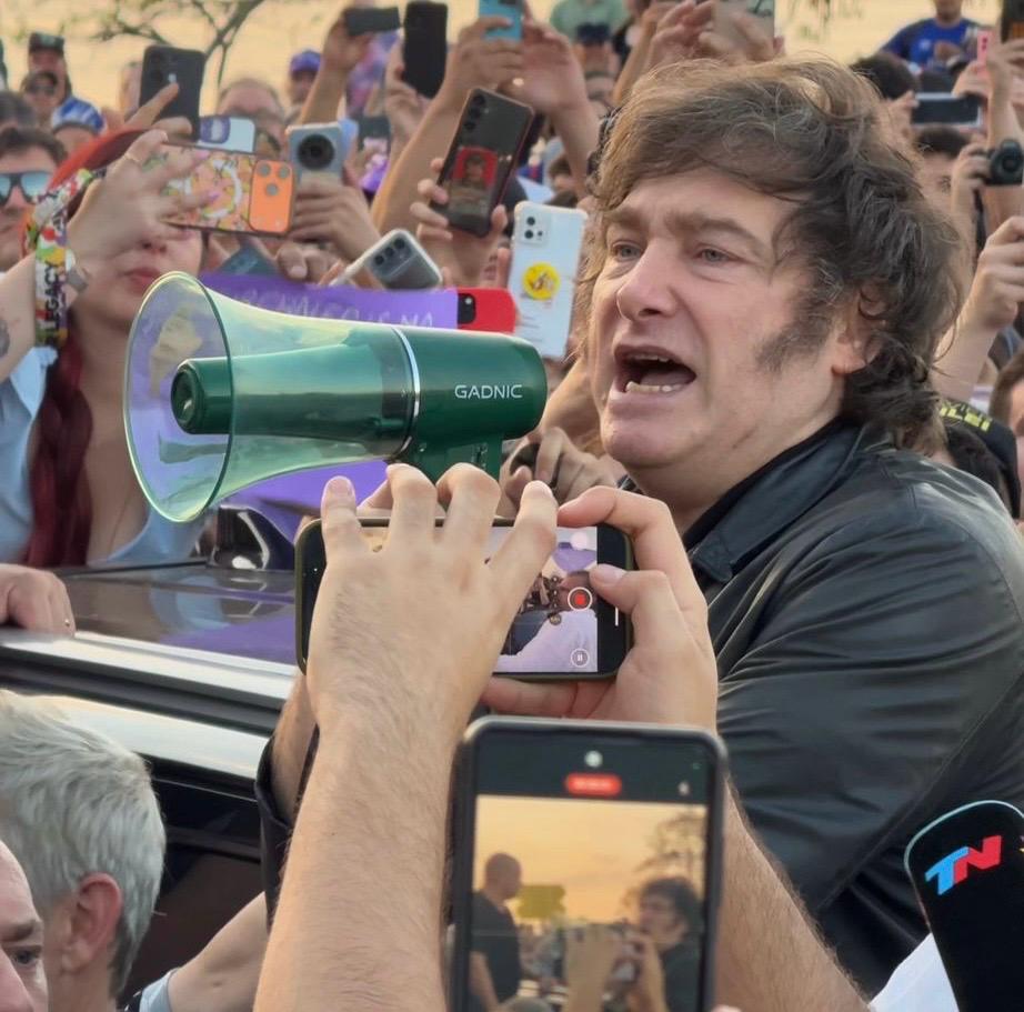 Arriba de una camioneta junto al gobernador Rogelio Frigerio, Milei agregó: “Estamos en un momento bisagra de la Argentina. Luego de semejante debacle y decadencia decidimos abrazar las ideas de la libertad en 2023. En ese sentido hemos bajado la inflación del 300% al 30%, hemos sacado de la pobreza a 12 millones de argentinos”.