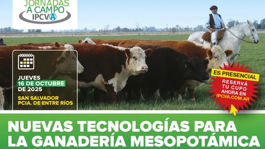 Bajo el slogan “Nuevas tecnologías para la ganadería mesopotámica”, el Instituto de Promoción de la Carne Vacuna Argentina (IPCVA) llevará a cabo una nueva Jornada a Campo en el Establecimiento La Lucrecia de San Salvador, Entre Ríos. Será el próximo jueves 16 de octubre de 2025.