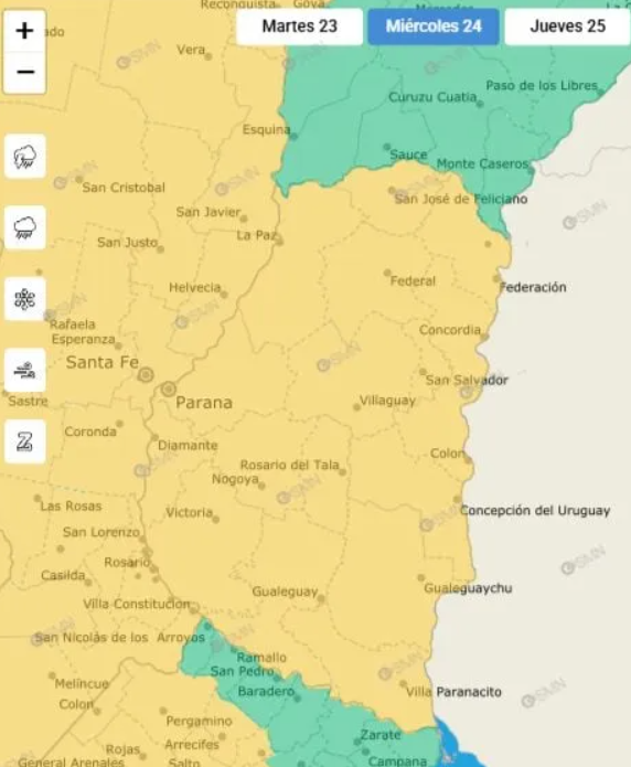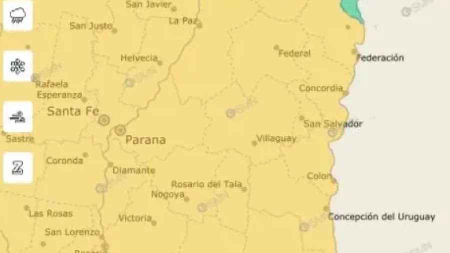 El Servicio Meteorológico Nacional (SMN) emitió un alerta amarillo para toda la provincia de Entre Ríos por tormentas fuertes para este miércoles por la noche.