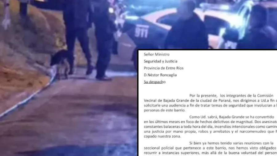 Vecinos del barrio Bajada Grande, de Paraná, denuncian una escalada de violencia armada vinculada al narcomenudeo, protagonizada por bandas integradas por jóvenes y adolescentes. En ese marco, solicitaron formalmente una audiencia con el ministro de Seguridad de la provincia, Néstor Roncaglia, y con el jefe de la Departamental Paraná de Policía, comisario Hernán Walter Góngora, para exigir medidas de prevención y mayor presencia estatal en el territorio.