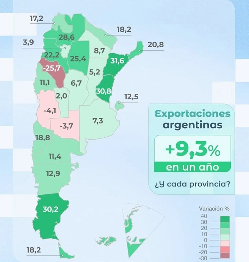 Según el informe del Indec, Entre Ríos representó el 2,4 por ciento de las exportaciones nacionales y el 3,4 por ciento de las exportaciones de la región pampeana, destacándose además por el fuerte crecimiento registrado durante el último año.