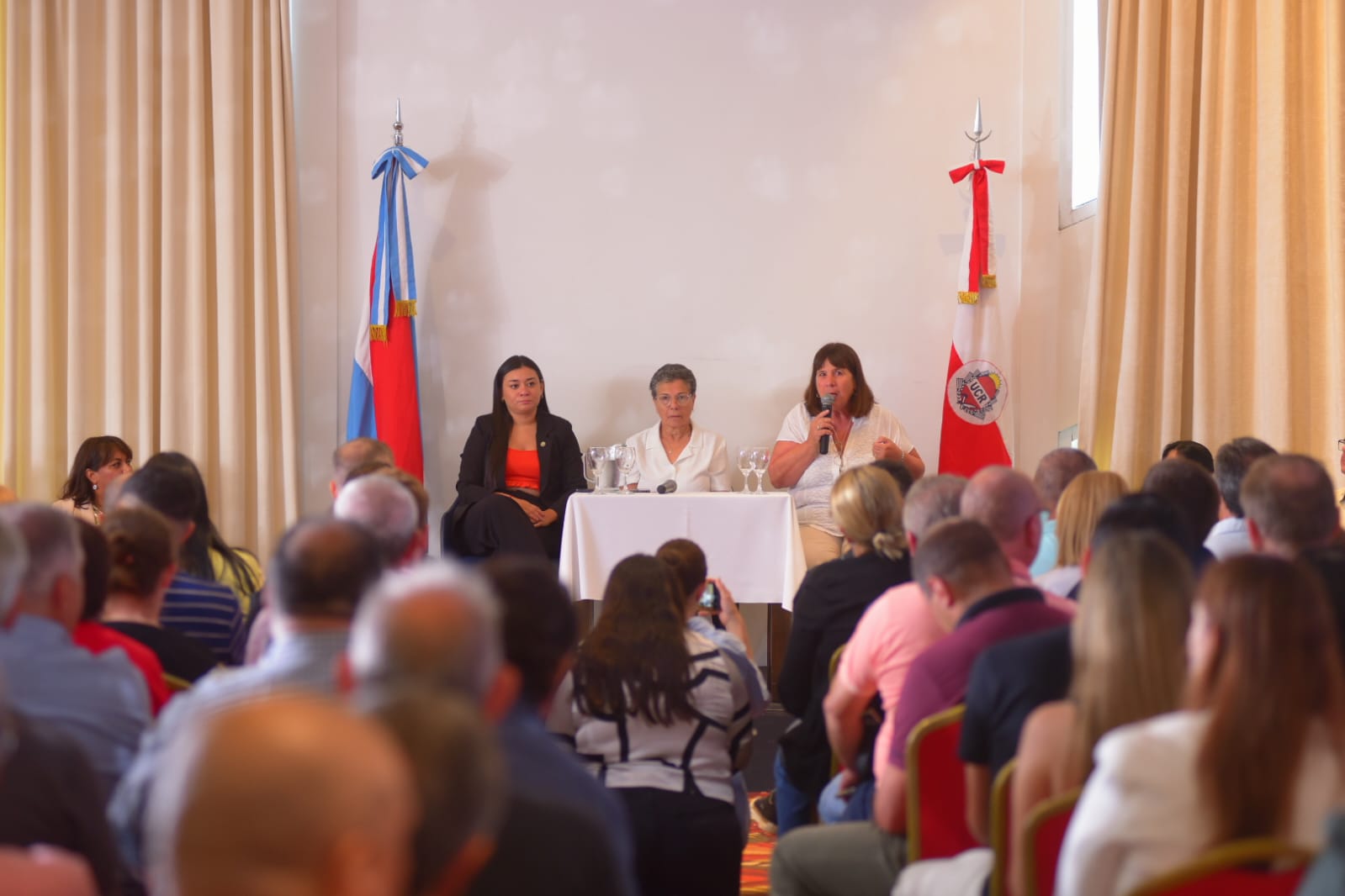 La actividad se desarrolló en el Salón del Hotel Quinto Elemento y tuvo su apertura a cargo de la intendenta anfitriona, Susana Lambert, junto a Alicia Oviedo, presidenta del Comité Provincial de la UCR, y Eliana Lagraña, en representación de la Juventud Radical. Ellas destacaron el compromiso territorial del partido y la responsabilidad de acompañar el proceso de transformación en marcha.