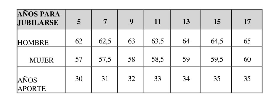 (a) Se aumenta la edad de la JOC que actualmente es 62 (V) y 57 (M) respectivamente para varones y mujeres.