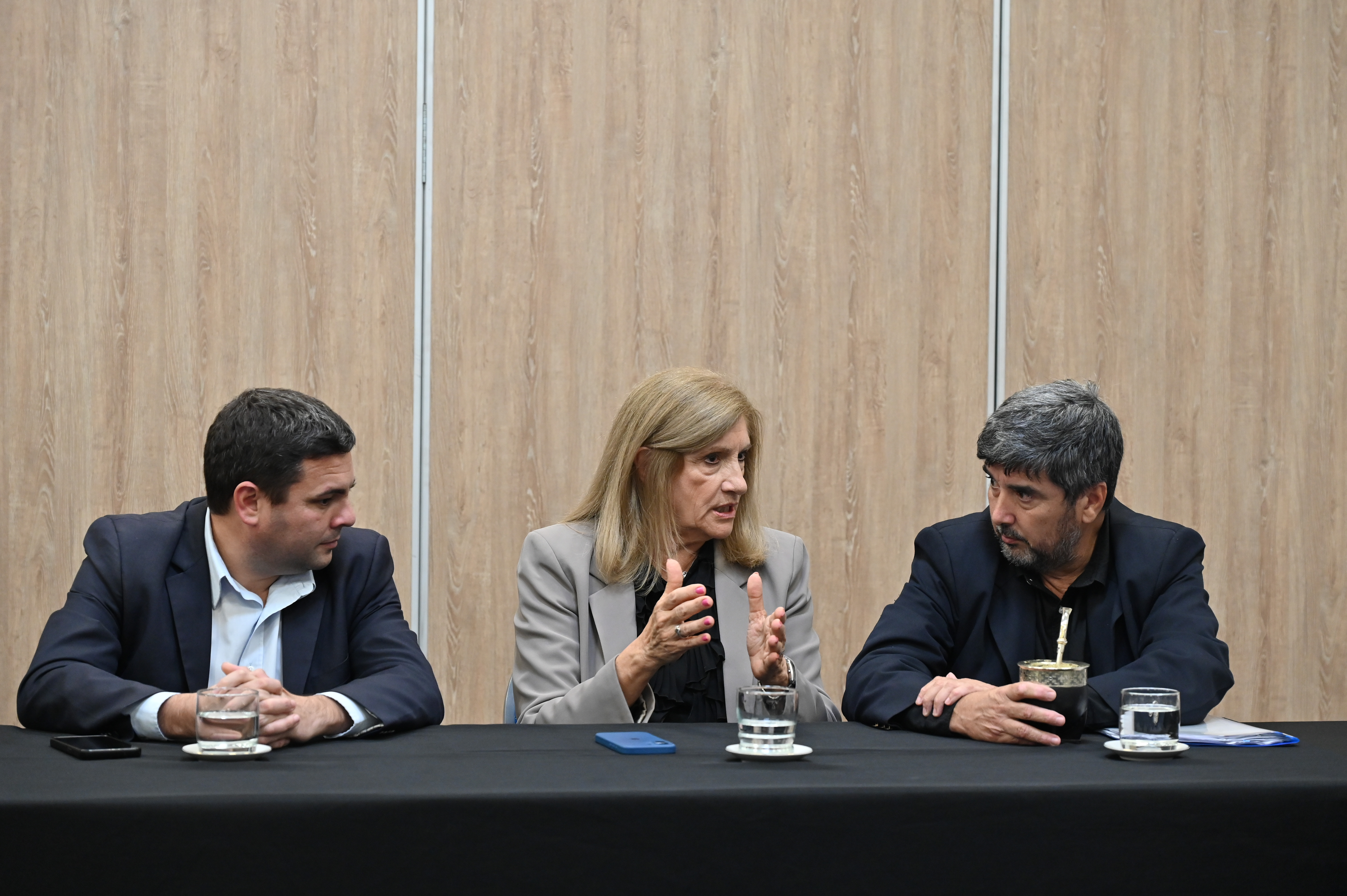 Del encuentro participaron también los ministros de Gobierno y Trabajo, Manuel Troncoso; de Hacienda, Fabián Boleas; de Salud, Daniel Blanzaco; de Desarrollo Humano, Verónica Berisso; y de Planeamiento, Hernán Jacob; el presidente de la Caja de Jubilaciones, Gastón Bagnat; el secretario de Gobiernos Locales, Ricardo Vales; y el gerente general de Enersa, Jorge Tarchini.