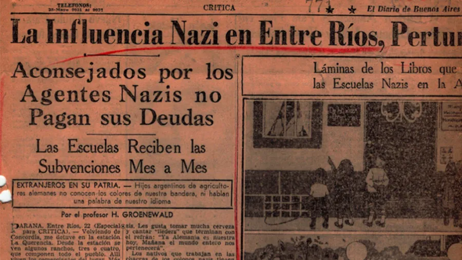 “La influencia nazi en Entre Ríos, perturba y desorganiza la vida de los colonos” es el título principal del Diario Crítica del viernes 22 de abril de 1938.