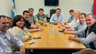 Los candidatos a legisladores nacionales de Fuerza Entre Ríos, Adán Bahl, Guillermo Michel y Andrés Sabella, junto a la intendenta Rosario Romero, mantuvieron un encuentro este miércoles con el decano de Facultad de Humanidades, Artes y Ciencias Sociales de la Universidad Autónoma de Entre Ríos (Uader), Daniel Richar, trabajadores docentes y no