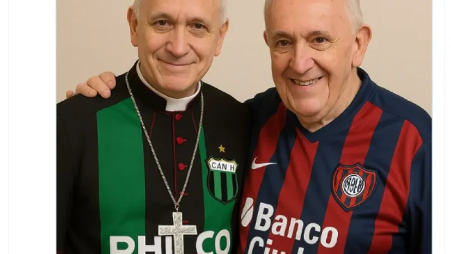 Un montaje estilo Crónica TV llevó el sello nacional: “El verdadero León”, aludiendo al nuevo nombre pontificio con tipografía característica del canal. También hubo guiños culinarios de la mano del padre Juan Gabriel Arias, sacerdote ex dirigente de Racing: una imagen generada con IA mostró a un papa sonriente comiendo ceviche acompañado de una Inca Kola, como celebración peruana a su origen misionero en Trujillo.