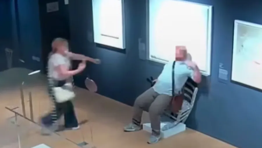 El momento en el que el turista rompe la silla quedó registrado en las cámaras del museo.