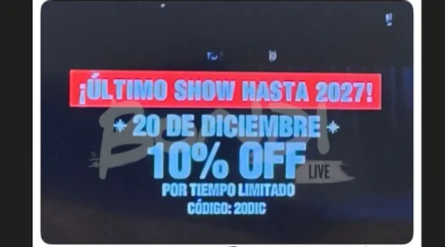 Según relató el conductor de Bondi en su streaming que estuvo presente en el show de Miranda! del domingo pasado, el conjunto musical difundió una imagen en las pantallas alertando a los presentes que sería el “último show hasta 2027”.