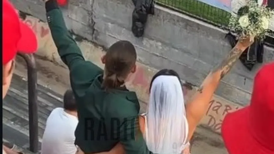 Con traje y vestido blanco, los futuros esposos ingresaron acompañados por su propio fotógrafo y también fueron retratados por los profesionales del estadio. La escena, inusual en la previa de un encuentro oficial, combinó la pasión futbolera con una de las celebraciones más importantes en la vida de la pareja.