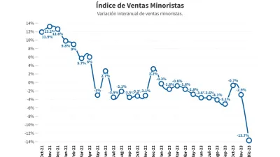 En diciembre, las ventas minoristas pymes tuvieron un derrumbe anual de 13,7%, en la medición a