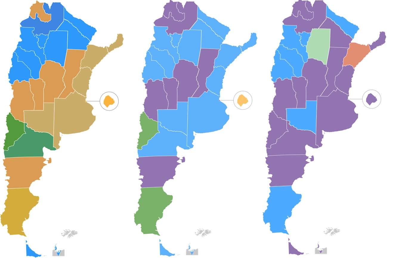 Elecciones 2025: los tres mapas que muestran los cambios en las fuerzas ganadoras de cada provincia desde 2021