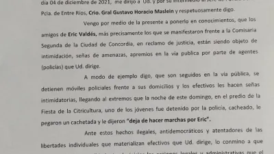 Los abogados Guillermo Peñalver y Carlos María Conti lo manifestaron mediante un escrito dirigido al jefe Departamental de Policía, Jorge Cancio, con copia al jefe de Policía de la provincia, Gustavo Maslein.