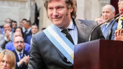 Ante la presencia de los expresidentes Mauricio Macri y José María Aznar, y el presidente de Uruguay, Luis Lacalle Pou, que minuto antes había dicho que para que la sociedad sea más libre se necesita un estado fuerte, el Presidente dijo que está orgulloso de su equipo de gobierno y consideró que cada uno