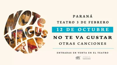 El sábado 12 de octubre en horario de las 21, tendrá lugar en el Teatro Municipal 3 de Febrero de la capital entrerriana, el recital “Otras Canciones”, de NTVG. El mismo se da con motivo de sus 25 años como banda, para lo que realizó la grabación de una pieza audiovisual donde revisó una buena parte de su carrera.